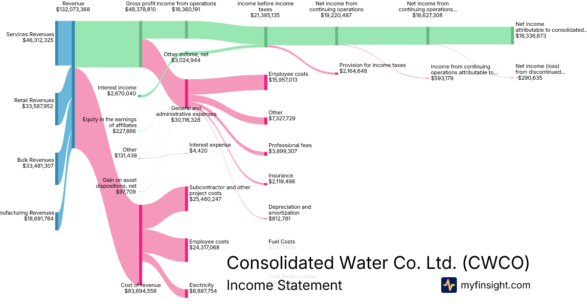 For the year ending 2025-12-31, CWCO made $132,073,368 in revenue. $18,336,673 in net income. Net profit margin of 13.88%.