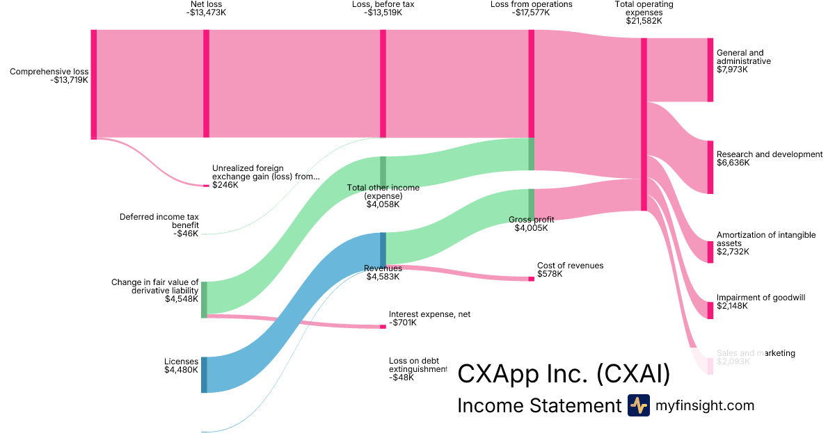 For the year ending 2025-12-31, CXAI made $4,583K in revenue. -$13,719K in net income. Net profit margin of -299.35%.