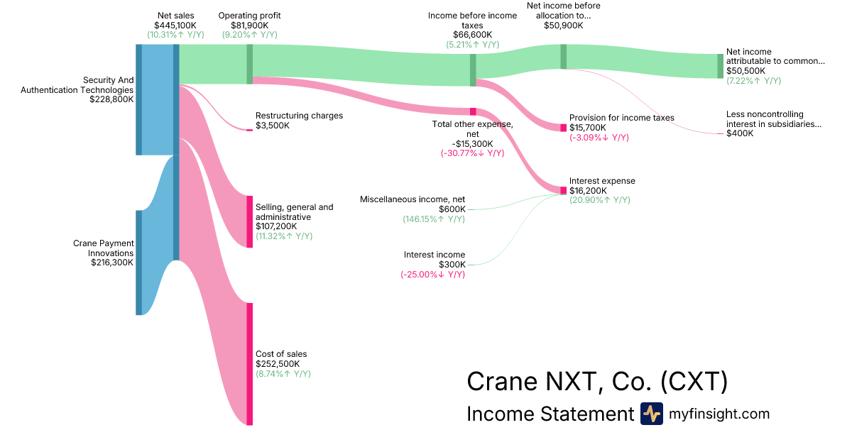 For the quarter ending 2025-09-30, CXT made $445,100K in revenue. $50,500K in net income. Net profit margin of 11.35%.