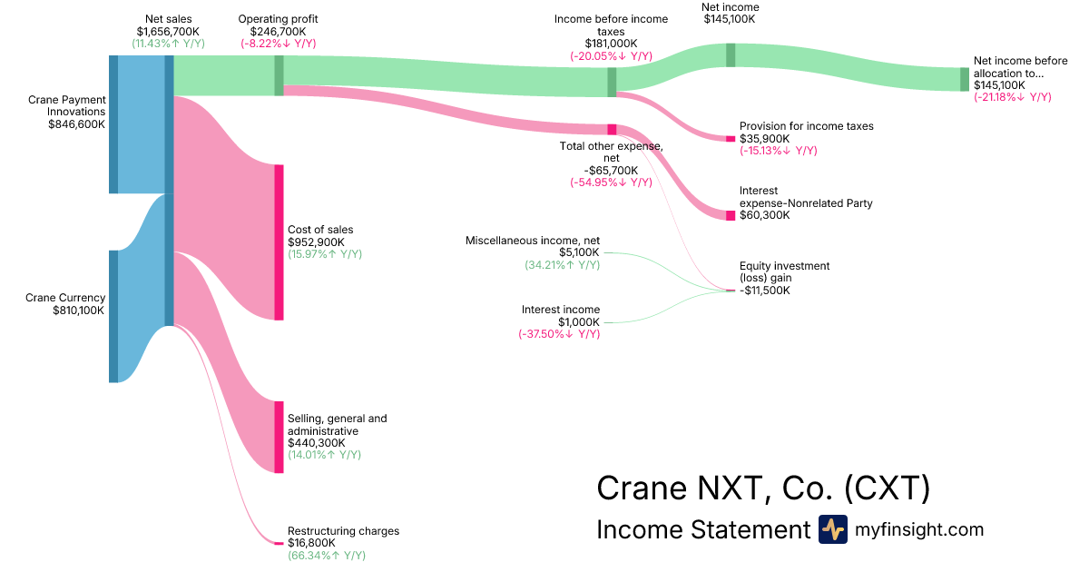 For the year ending 2025-12-31, CXT made $1,656,700K in revenue. $145,100K in net income. Net profit margin of 8.76%.