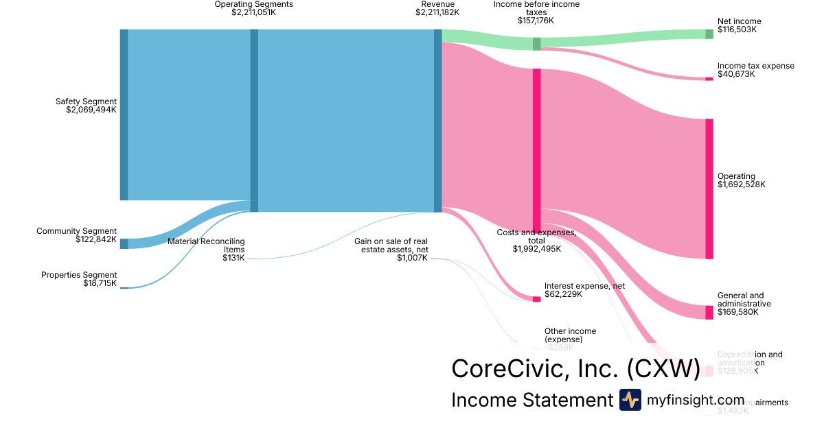 For the year ending 2025-12-31, CXW made $2,211,182K in revenue. $116,503K in net income. Net profit margin of 5.27%.