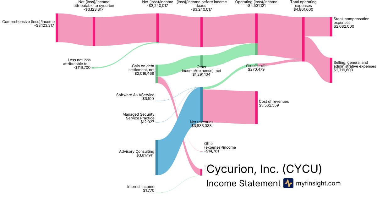 For the quarter ending 2025-09-30, CYCU made $3,833,038 in revenue. -$3,123,317 in net income. Net profit margin of -81.48%.