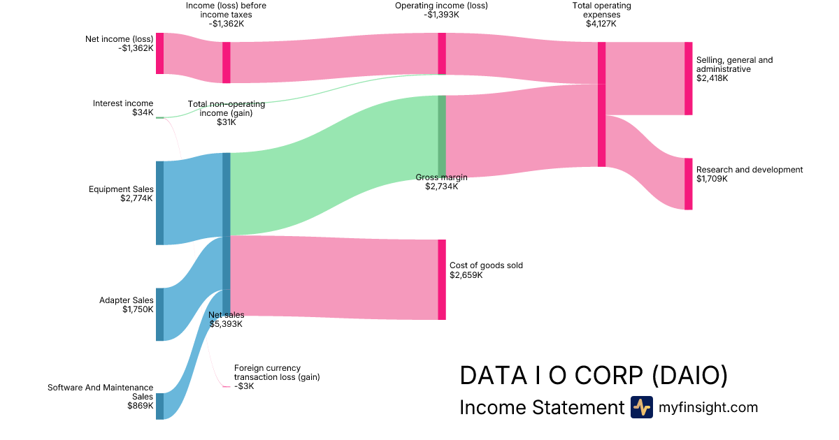 For the quarter ending 2025-09-30, DAIO made $5,393K in revenue. -$1,362K in net income. Net profit margin of -25.25%.