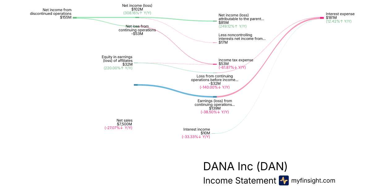 For the year ending 2025-12-31, DAN made $7,500M in revenue. $85M in net income. Net profit margin of 1.13%.