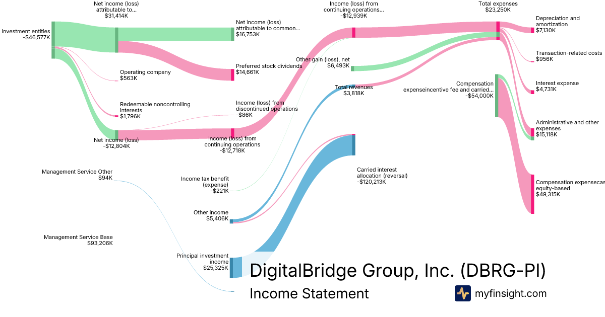 For the quarter ending 2025-09-30, DBRG-PI made $3,818K in revenue. $16,753K in net income. Net profit margin of 438.79%.