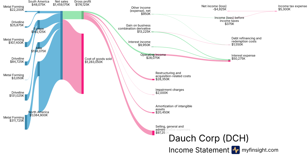 For the year ending 2025-12-31, DCH made $5,836,700K in revenue. -$19,700K in net income. Net profit margin of -0.34%.