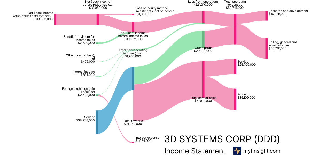 For the quarter ending 2025-09-30, DDD made $91,249,000 in revenue. -$18,053,000 in net income. Net profit margin of -19.78%.