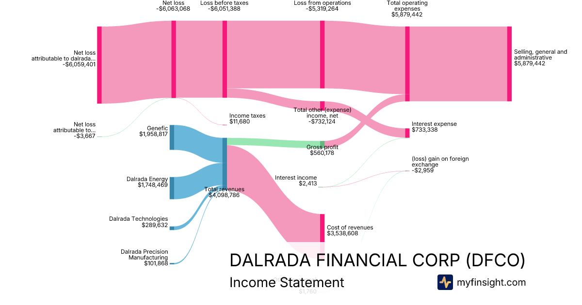 For the quarter ending 2025-09-30, DFCO made $4,098,786 in revenue. -$6,059,401 in net income. Net profit margin of -147.83%.
