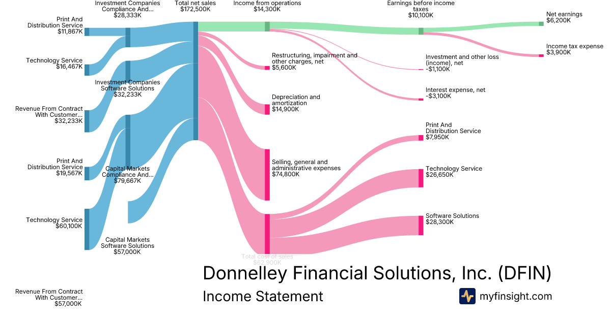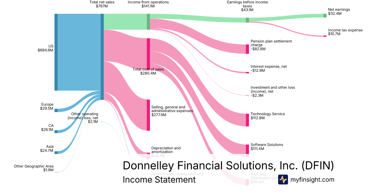 For the year ending 2025-12-31, DFIN made $767M in revenue. $32.4M in net income. Net profit margin of 4.22%.