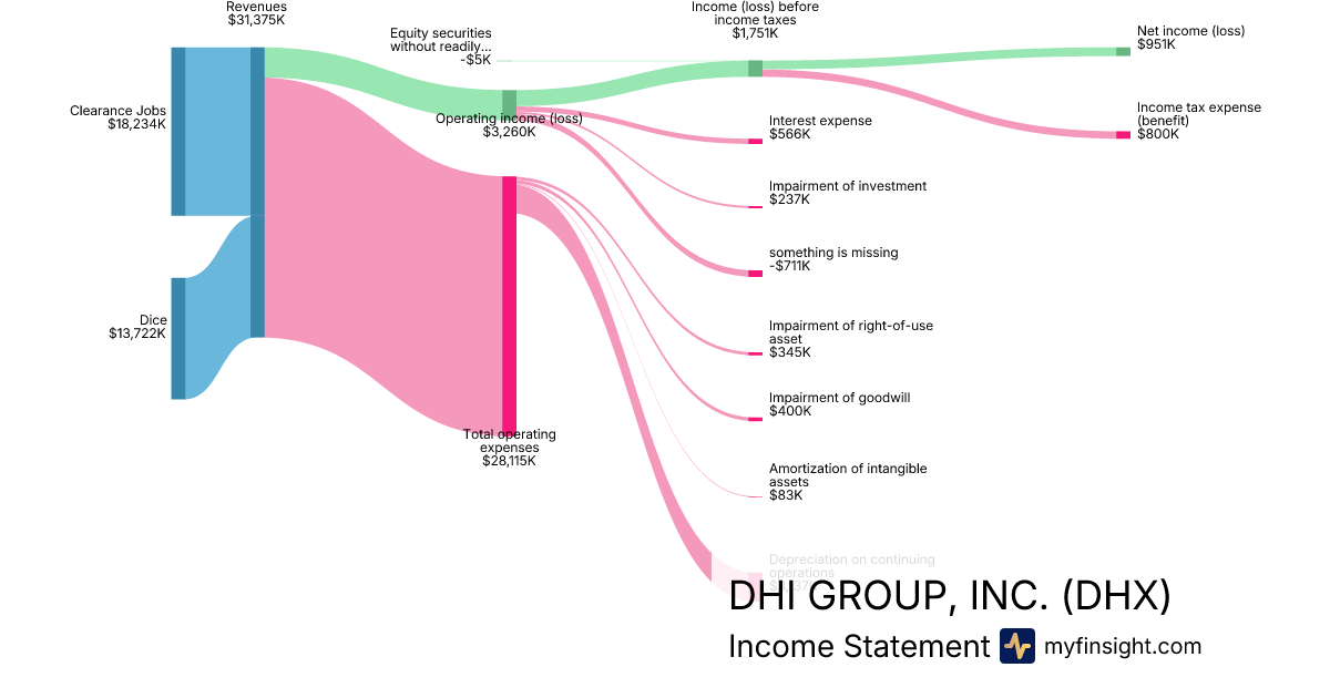 For the year ending 2025-12-31, DHX made $127,826K in revenue. -$13,510K in net income. Net profit margin of -10.57%.