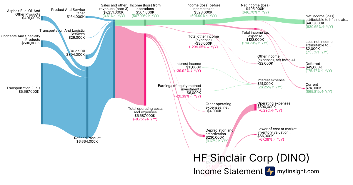 For the quarter ending 2025-09-30, DINO made $7,251M in revenue. $403M in net income. Net profit margin of 5.56%.