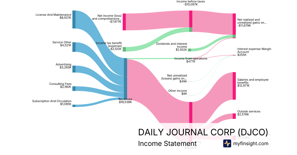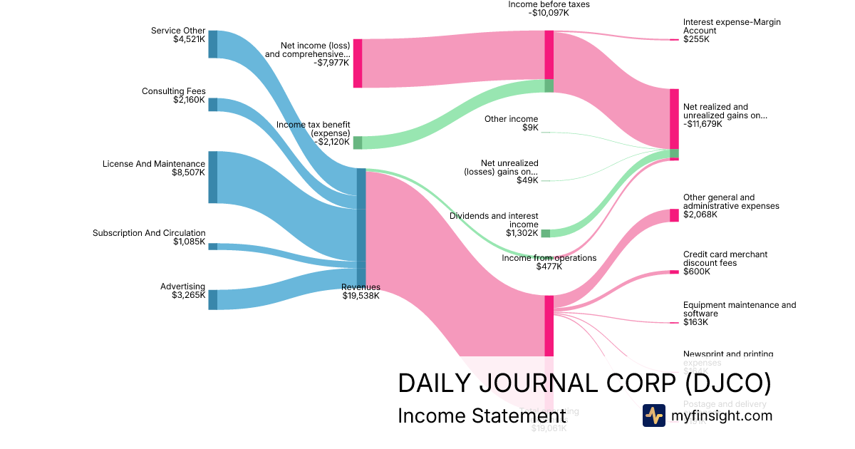 For the quarter ending 2025-12-31, DJCO made $19,538K in revenue. -$7,977K in net income. Net profit margin of -40.83%.