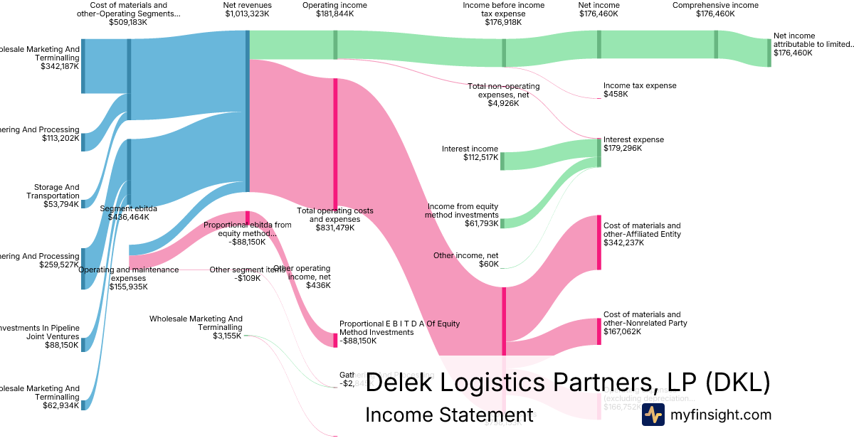 For the year ending 2025-12-31, DKL made $1,013,323K in revenue. $176,460K in net income. Net profit margin of 17.41%.