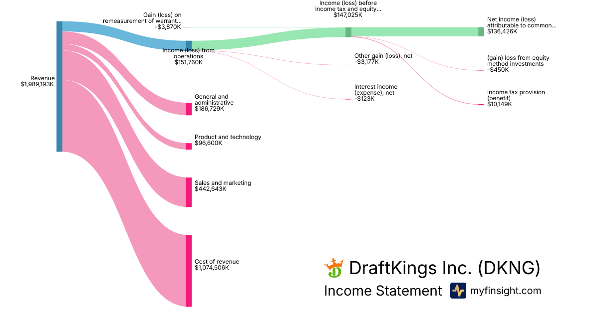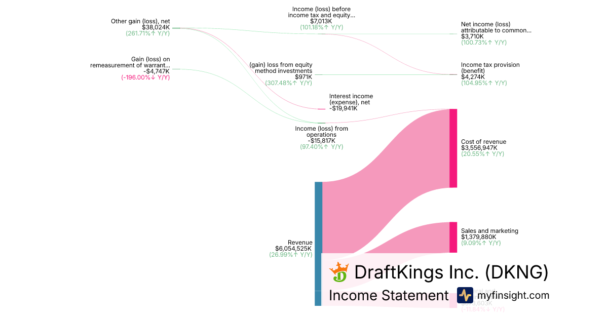 For the year ending 2025-12-31, DKNG made $6,054,525K in revenue. $3,710K in net income. Net profit margin of 0.06%.