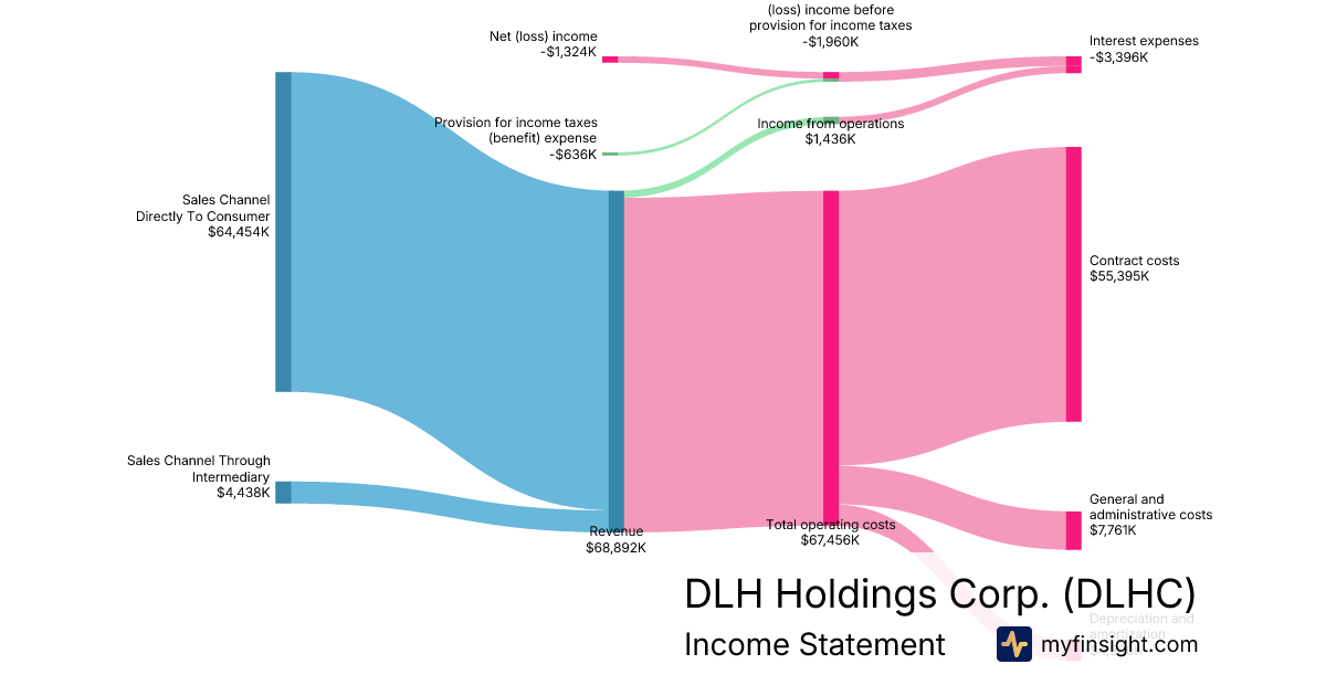 For the quarter ending 2025-12-31, DLHC made $68,892K in revenue. -$1,324K in net income. Net profit margin of -1.92%.