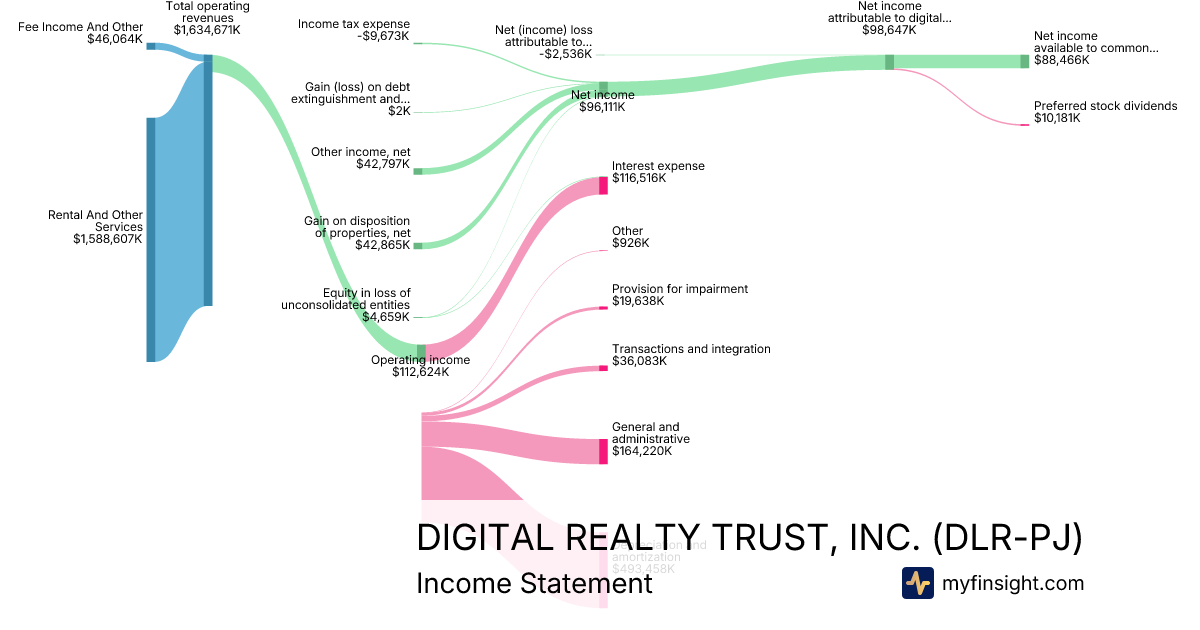 For the year ending 2025-12-31, DLR-PJ made $6,112,692K in revenue. $1,267,865K in net income. Net profit margin of 20.74%.
