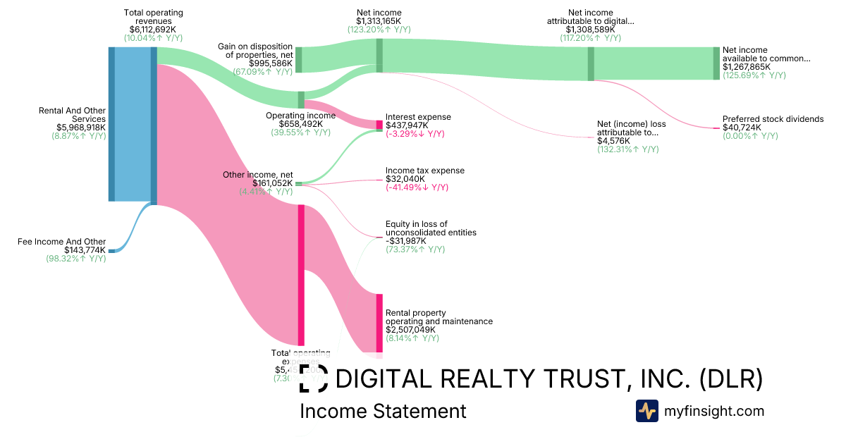 For the year ending 2025-12-31, DLR made $6,112,692K in revenue. $1,267,865K in net income. Net profit margin of 20.74%.