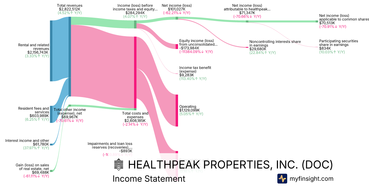 For the year ending 2025-12-31, DOC made $2,822,512K in revenue. $70,513K in net income. Net profit margin of 2.50%.