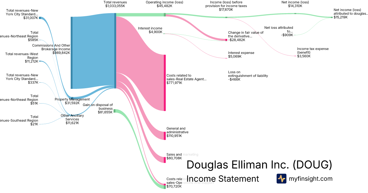 For the year ending 2025-12-31, DOUG made $1,033,055K in revenue. $15,219K in net income. Net profit margin of 1.47%.