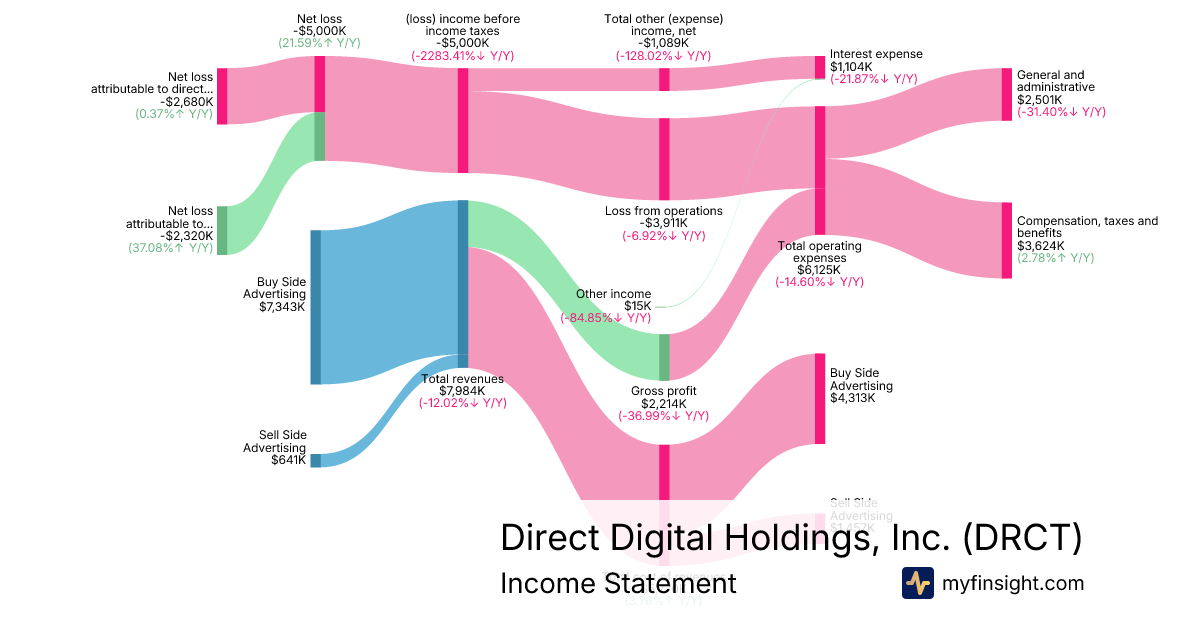 For the quarter ending 2025-09-30, DRCT made $7,984K in revenue. -$2,680K in net income. Net profit margin of -33.57%.