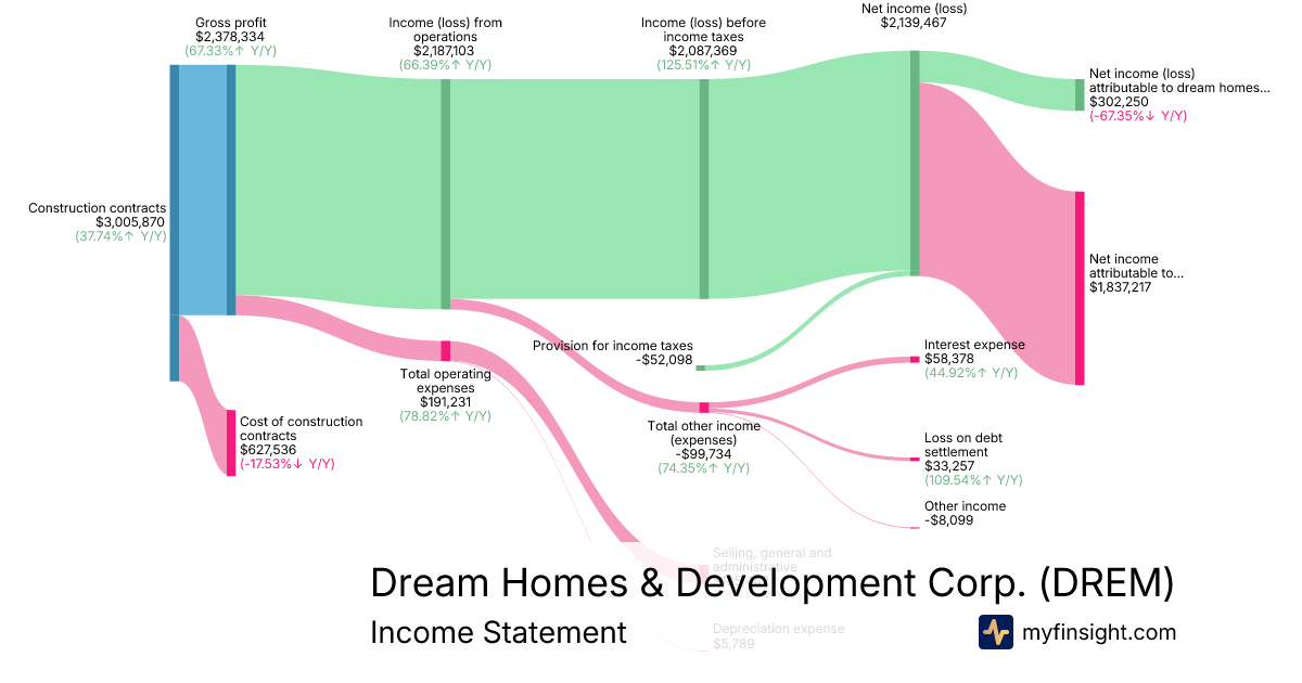 For the quarter ending 2025-09-30, DREM made $3,005,870 in revenue. $302,250 in net income. Net profit margin of 10.06%.