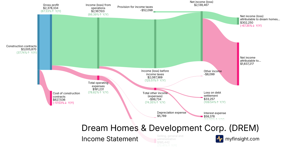 | Net income (loss) attributable to dream homes and development corporation | 302,250 | 72,591 | 925,632 | -743,847 |