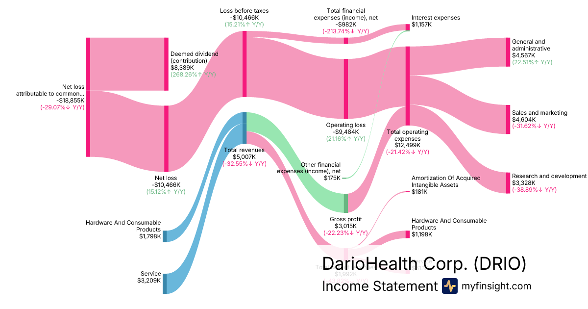 For the quarter ending 2025-09-30, DRIO made $5,007,000 in revenue. -$18,855,000 in net income. Net profit margin of -376.57%.