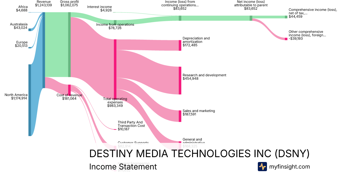 For the quarter ending 2025-11-30, DSNY made $1,243,139 in revenue. $44,459 in net income. Net profit margin of 3.58%.