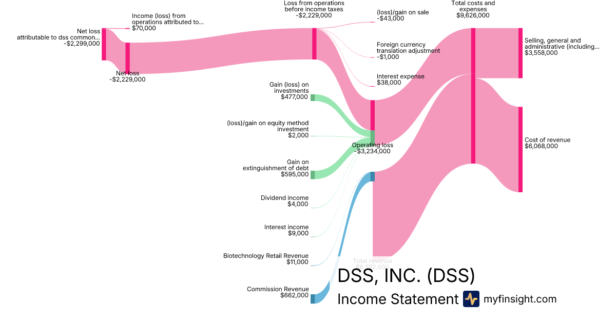 For the quarter ending 2025-09-30, DSS made $6,392,000 in revenue. -$2,299,000 in net income. Net profit margin of -35.97%.