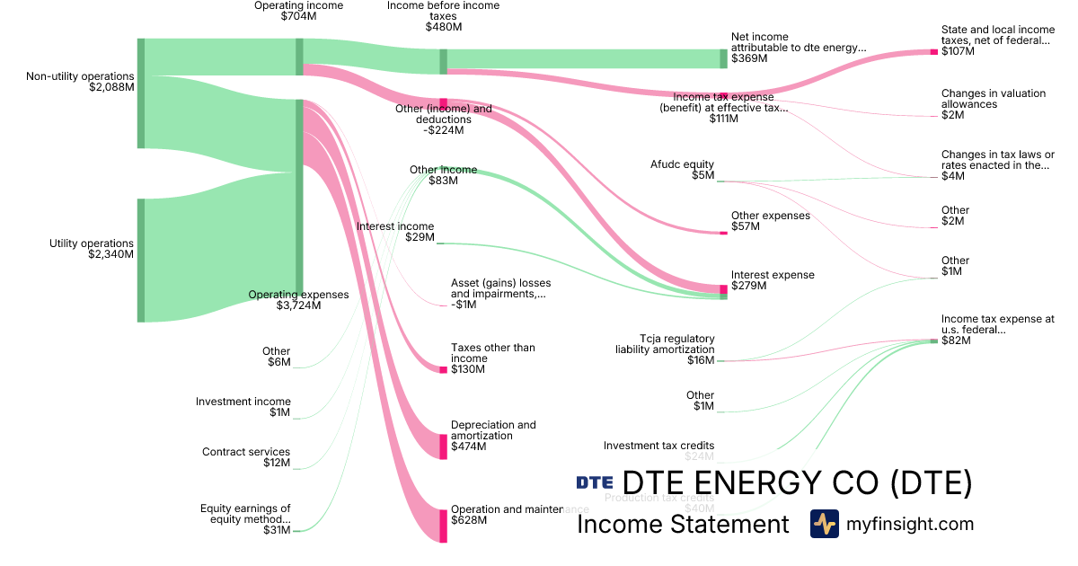 For the year ending 2025-12-31, DTE made $29,926M in revenue. $1,462M in net income. Net profit margin of 4.89%.