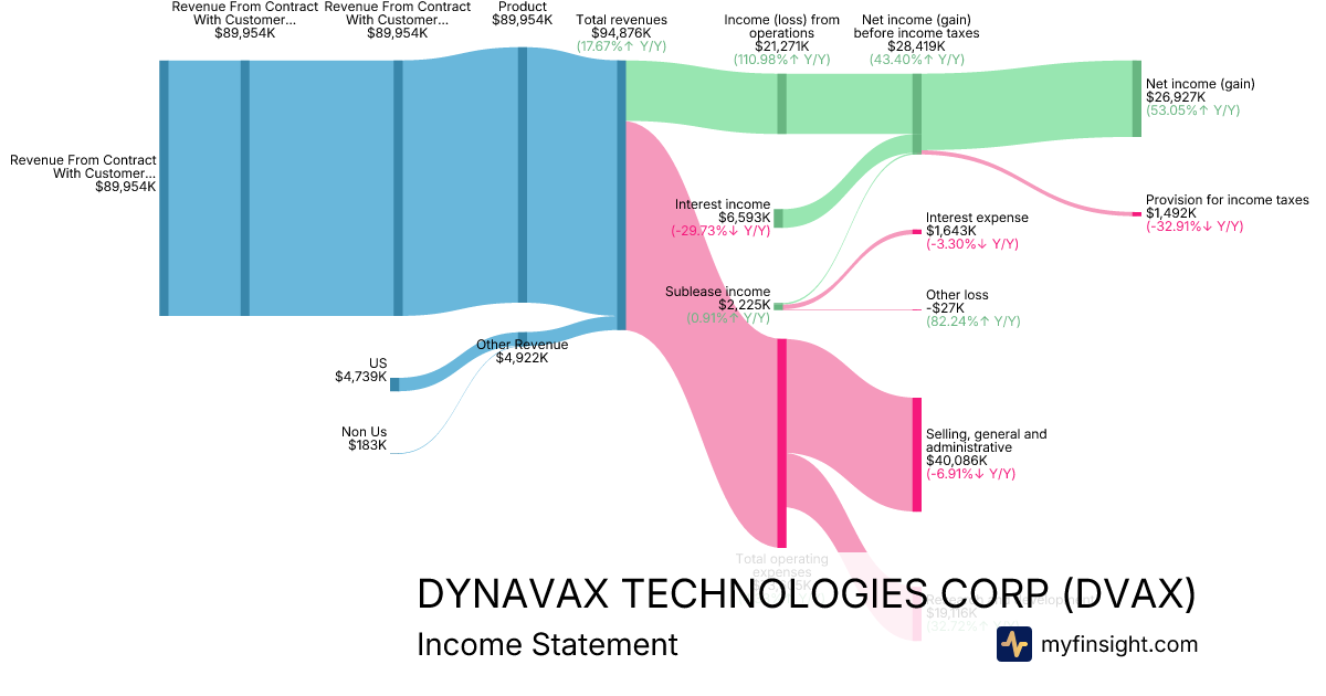 For the quarter ending 2025-09-30, DVAX made $94,876K in revenue. $26,927K in net income. Net profit margin of 28.38%.