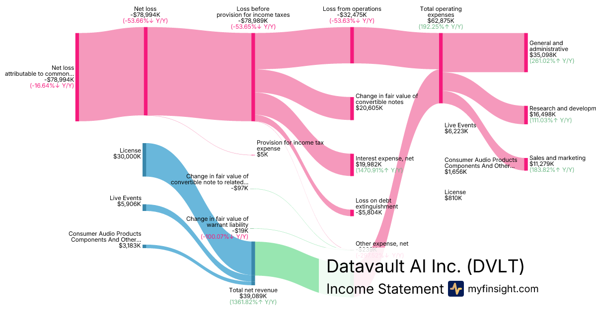 For the year ending 2025-12-31, DVLT made $39,089K in revenue. -$78,994K in net income. Net profit margin of -202.09%.