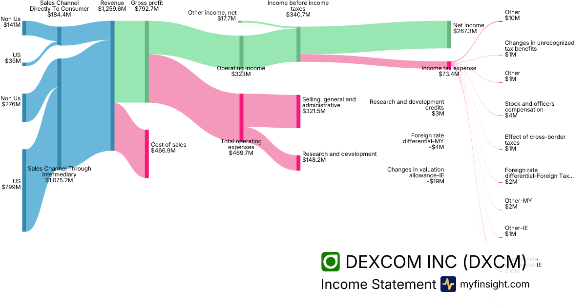For the year ending 2025-12-31, DXCM made $4,662M in revenue. $836.3M in net income. Net profit margin of 17.94%.