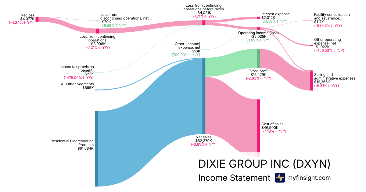 For the quarter ending 2025-09-27, DXYN made $62,379K in revenue. -$4,077K in net income. Net profit margin of -6.54%.