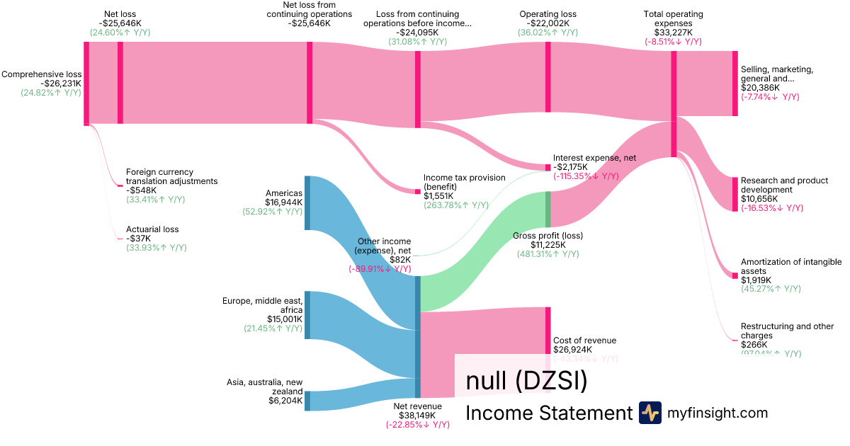 For the quarter ending 2024-09-30, DZSI made $38,149K in revenue. -$26,231K in net income. Net profit margin of -68.76%.