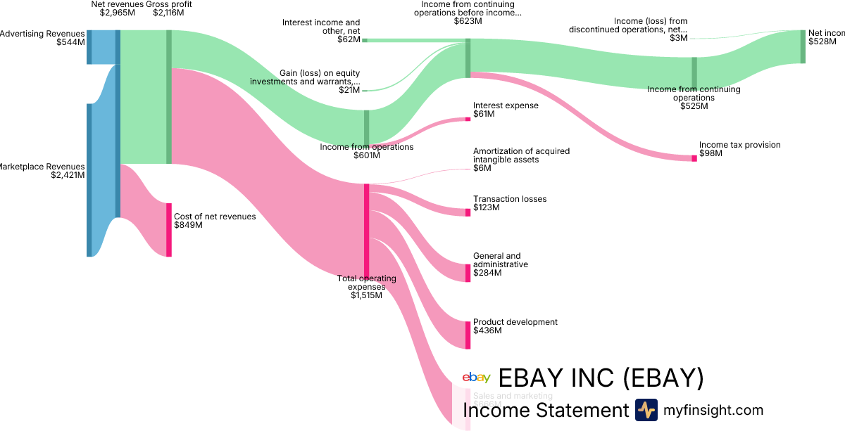 For the year ending 2025-12-31, EBAY made $11,100M in revenue. $2,031M in net income. Net profit margin of 18.30%.