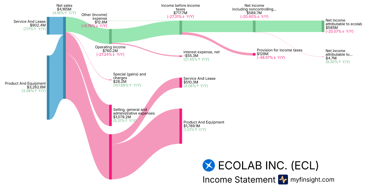 For the quarter ending 2025-09-30, ECL made $4,165M in revenue. $585M in net income. Net profit margin of 14.05%.