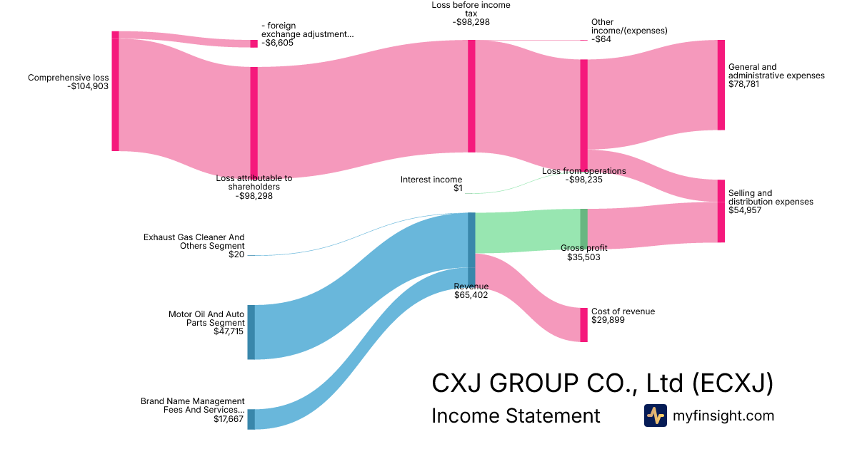 For the quarter ending 2025-11-30, ECXJ made $65,403 in revenue. -$104,903 in net income. Net profit margin of -160.39%.