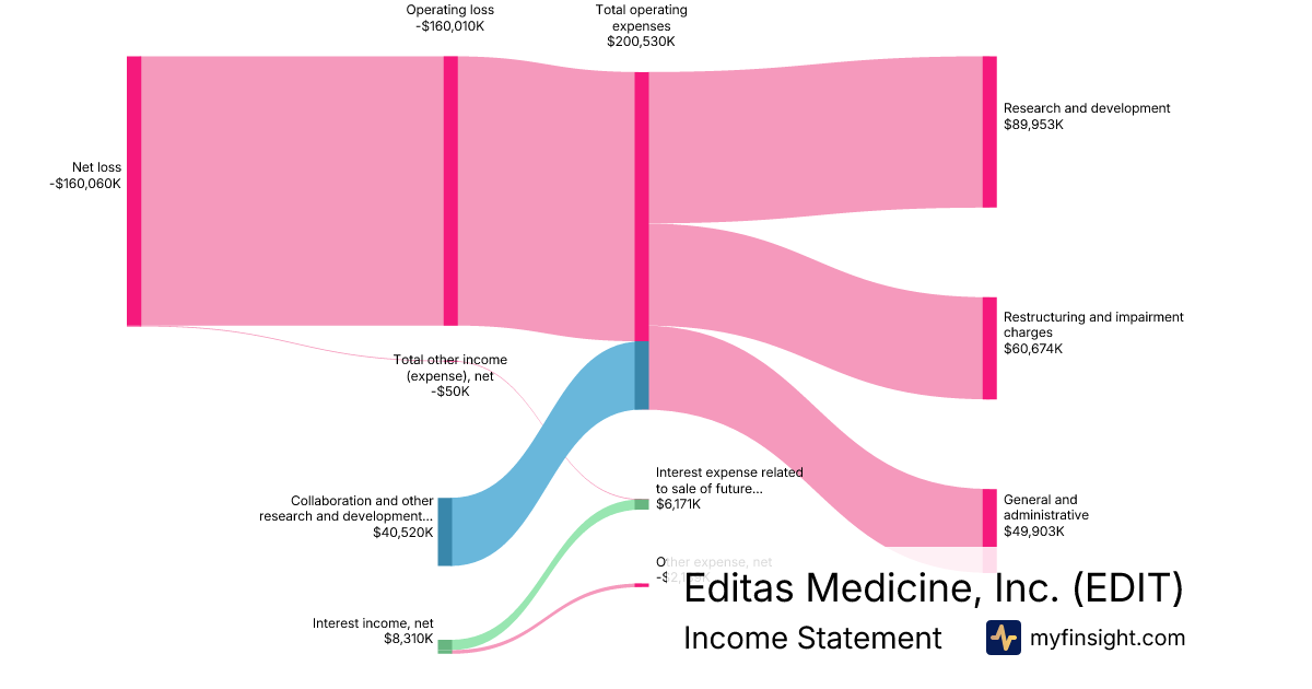 For the year ending 2025-12-31, EDIT made $40,520K in revenue. -$160,060K in net income. Net profit margin of -395.01%.