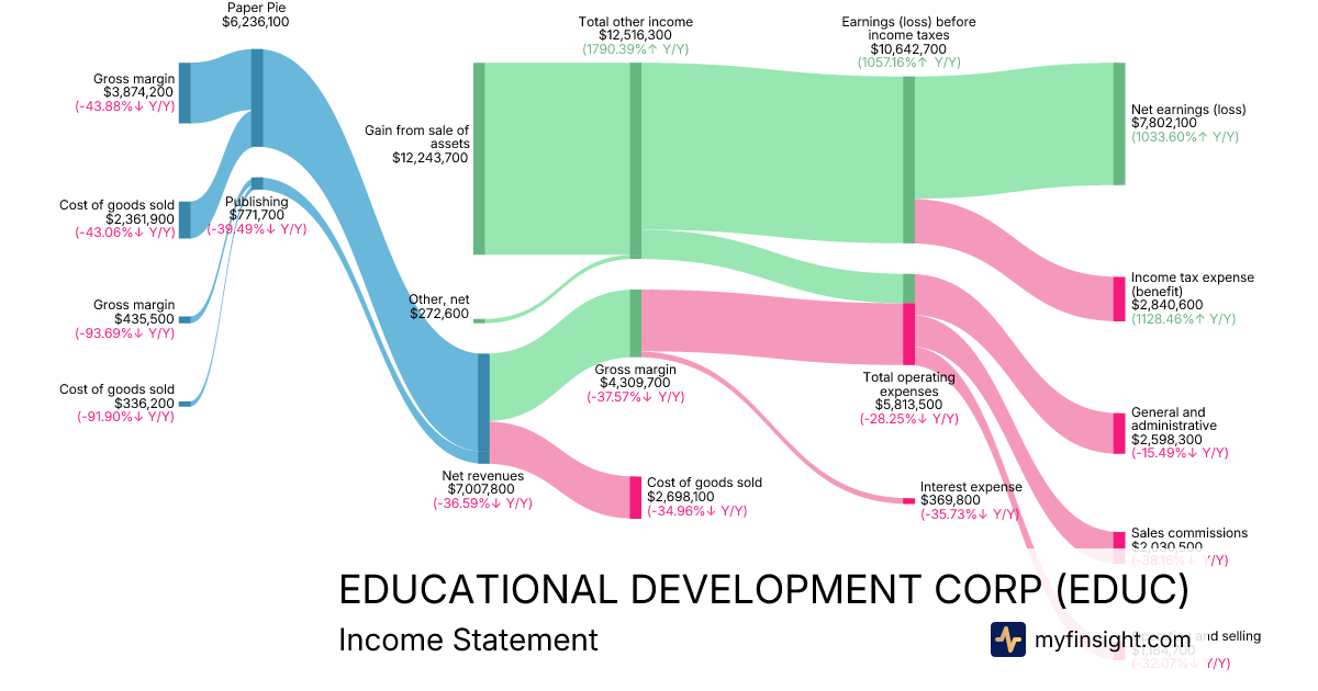 For the quarter ending 2025-11-30, EDUC made $7,007,800 in revenue. $7,802,100 in net income. Net profit margin of 111.33%.