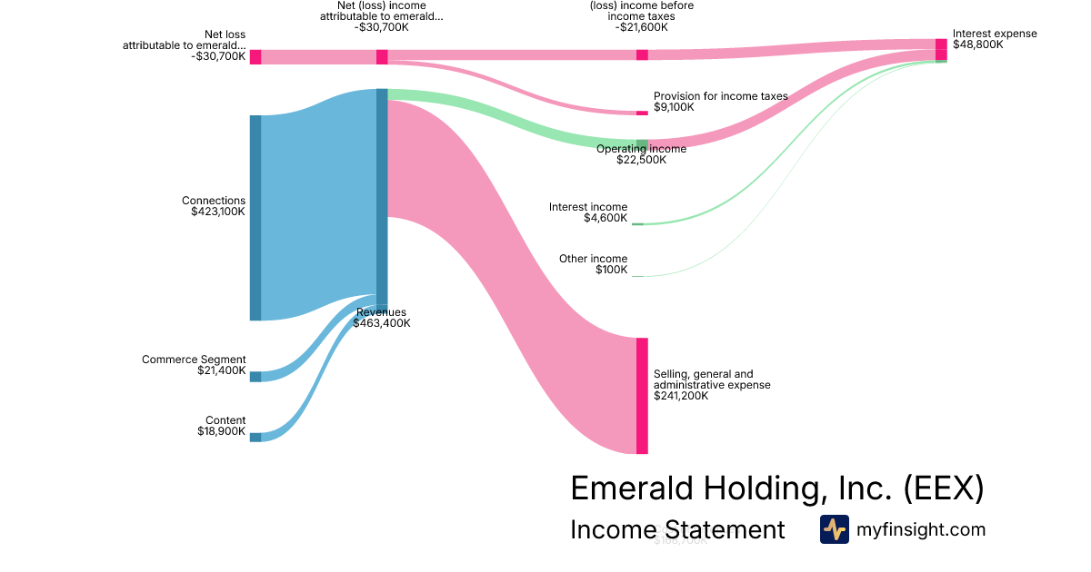 For the year ending 2025-12-31, EEX made $463,400K in revenue. -$30,700K in net income. Net profit margin of -6.62%.