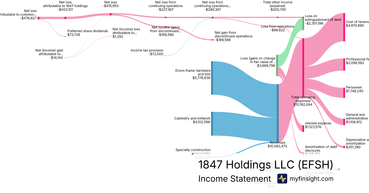| Net loss attributable to 1847 holdings | -403,101 | -96,906,748.5* | 2,813,784 | -4,875,229 |