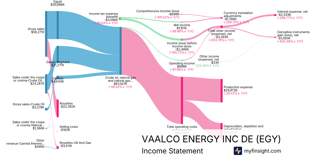 For the quarter ending 2025-09-30, EGY made $61,007K in revenue. -$698K in net income. Net profit margin of -1.14%.