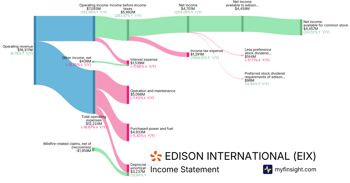 For the year ending 2025-12-31, EIX made $19,317M in revenue. $4,457M in net income. Net profit margin of 23.07%.