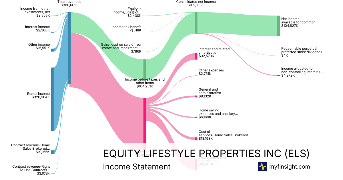 For the year ending 2025-12-31, ELS made $1,531,382K in revenue. $386,492K in net income. Net profit margin of 25.24%.