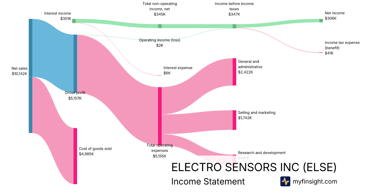For the year ending 2025-12-31, ELSE made $10,142K in revenue. $306K in net income. Net profit margin of 3.02%.