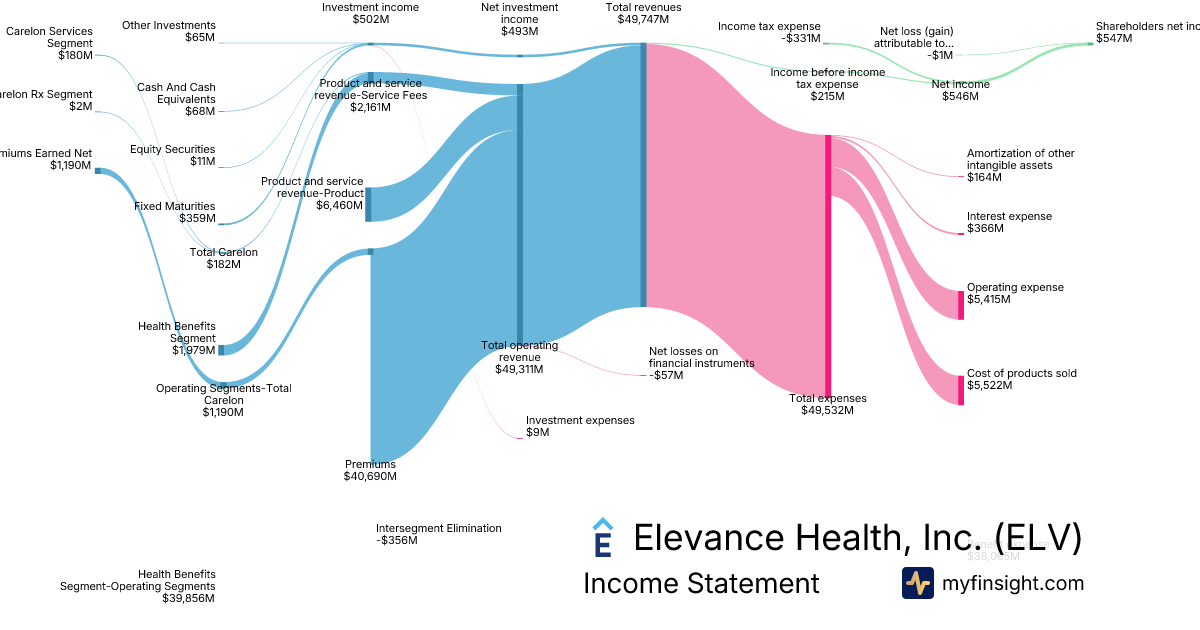 For the year ending 2025-12-31, ELV made $199,125M in revenue. $5,662M in net income. Net profit margin of 2.84%.