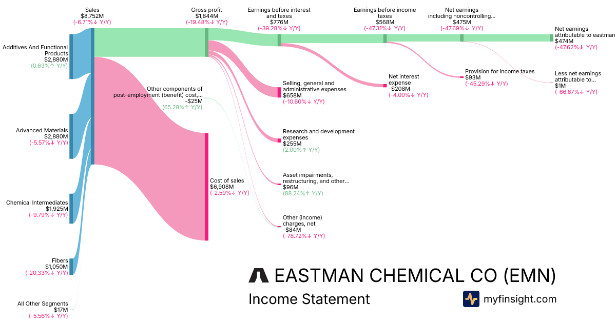 For the year ending 2025-12-31, EMN made $8,752M in revenue. $474M in net income. Net profit margin of 5.42%.