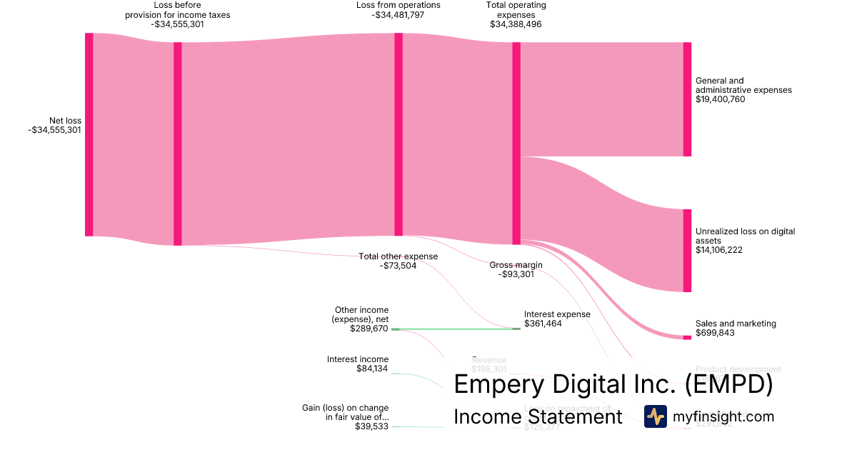 For the quarter ending 2025-09-30, EMPD made $198,301 in revenue. -$34,555,301 in net income. Net profit margin of -17425.68%.