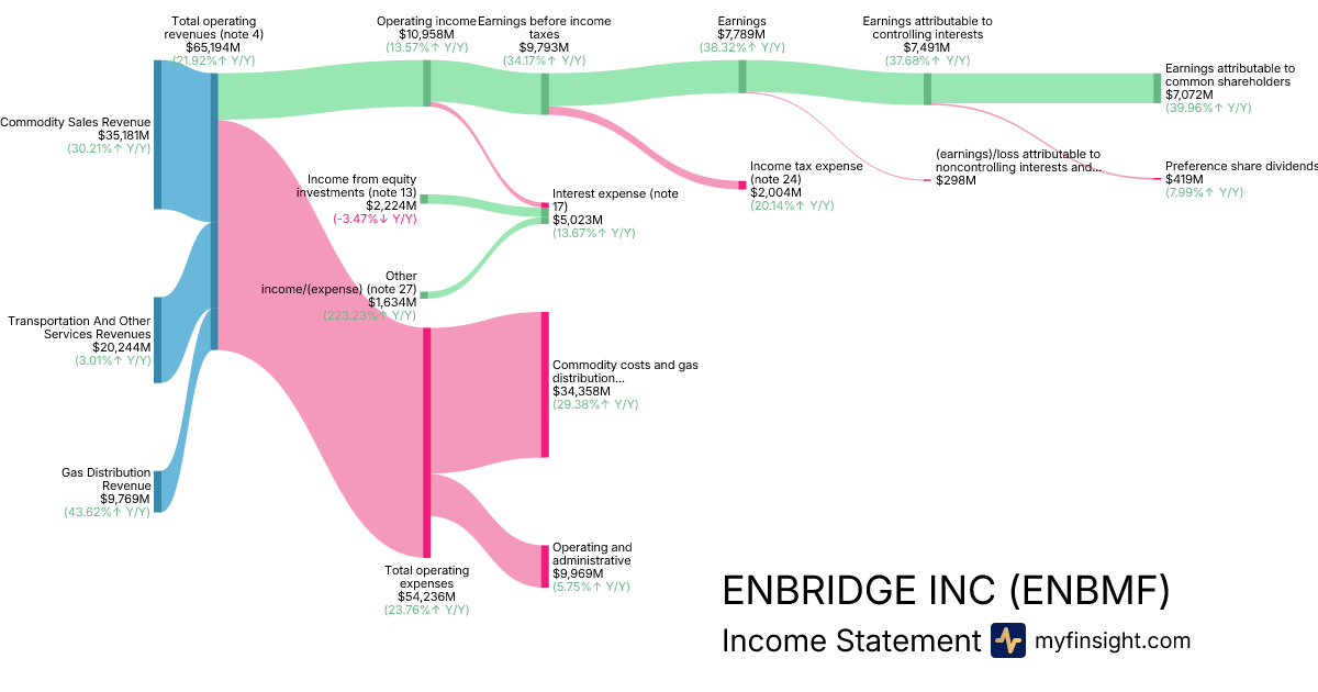 For the year ending 2025-12-31, ENBMF made $65,194M in revenue. $7,072M in net income. Net profit margin of 10.85%.